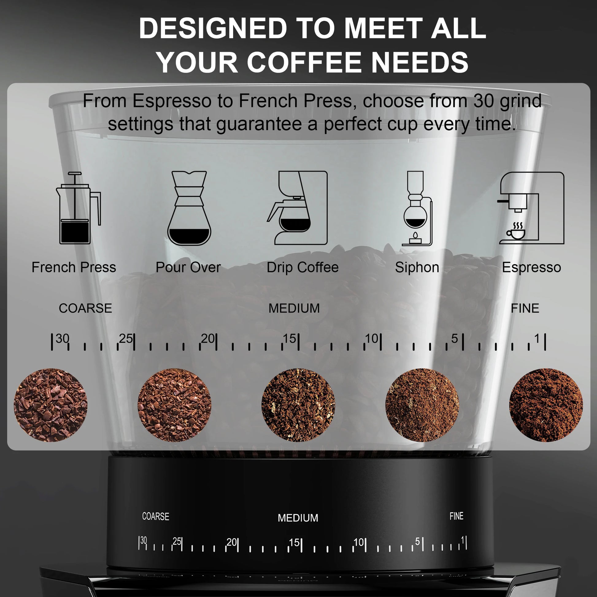 BioloMix Automatic Burr Coffee Grinder with 30 Settings
