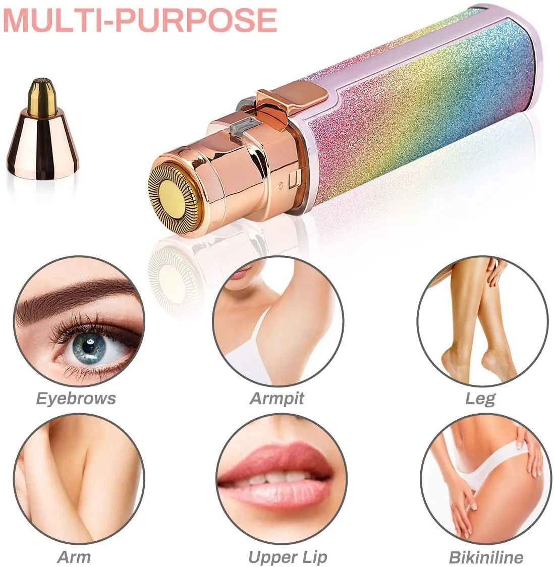 Achieve salon-quality hair removal at home with the Rainbow Flawless Painless Hair Remover!